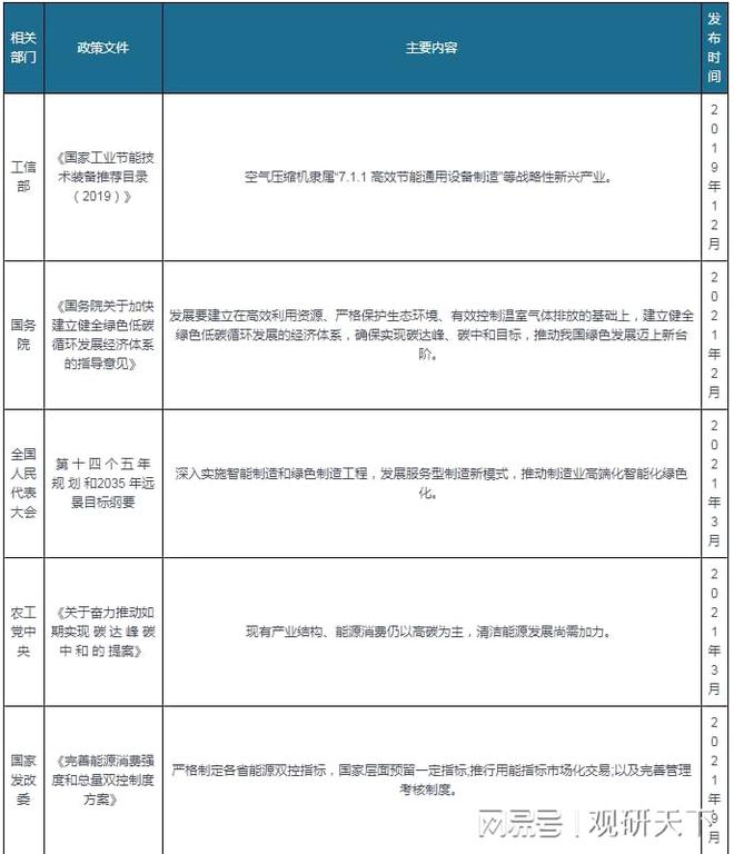 政策東風(fēng)已至,節(jié)能降耗型空壓機(jī)前景可期。據(jù)統(tǒng)計(jì),空壓機(jī)耗電量約占大型工業(yè)設(shè)備(如風(fēng)機(jī)、水泵、鍋爐等)總耗電量的 15%,占發(fā)電總量的 9%左右。空氣壓縮機(jī)作為工業(yè)用能設(shè)備,其能效水平對(duì)工業(yè)節(jié)能目標(biāo)的實(shí)現(xiàn)有著重要影響。當(dāng)前我國(guó)經(jīng)濟(jì)發(fā)展目標(biāo)正在由高速增長(zhǎng)向增長(zhǎng)轉(zhuǎn)換,加強(qiáng)工業(yè)節(jié)能管理,持續(xù)提源利用效率,以推動(dòng)綠色低碳循環(huán)發(fā)展。